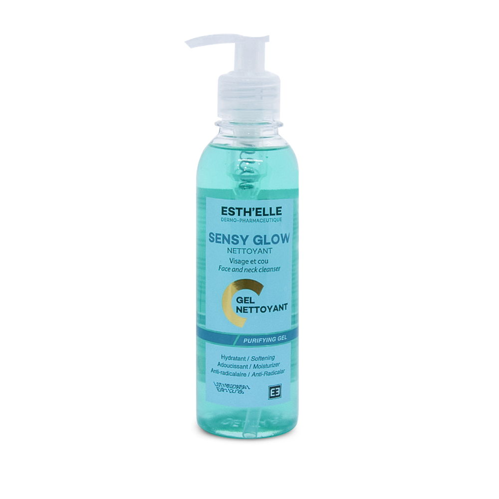 L'ESTHELLE SENSY GLOW GEL NETTOYANT VISAGE ET COU 250ML est un gel nettoyant ultra-doux conçu pour purifier la peau du visage et du décolleté en profondeur sans l'agresser ni la dessécher. Formulé sans savon et avec un pH physiologique, il respecte l'équilibre naturel de la peau et le film hydrolipidique. Sa texture légère et sa mousse onctueuse sont efficaces pour éliminer l'excès de sébum, les impuretés, les cellules mortes et les particules de pollution accumulées. Il agit également pour démaquiller délicatement le visage et les yeux. Enrichi en ingrédients actifs aux propriétés hydratantes et revitalisantes, il apporte à la peau confort et douceur immédiate, laisse le teint plus lumineux et réduit les brillances pour une sensation de fraîcheur durable.