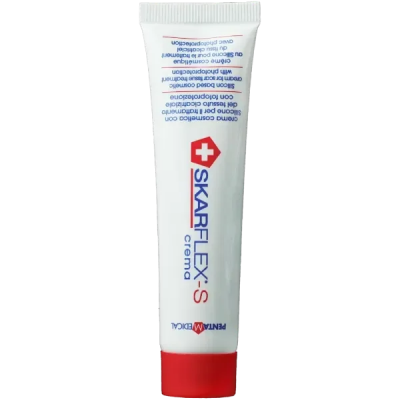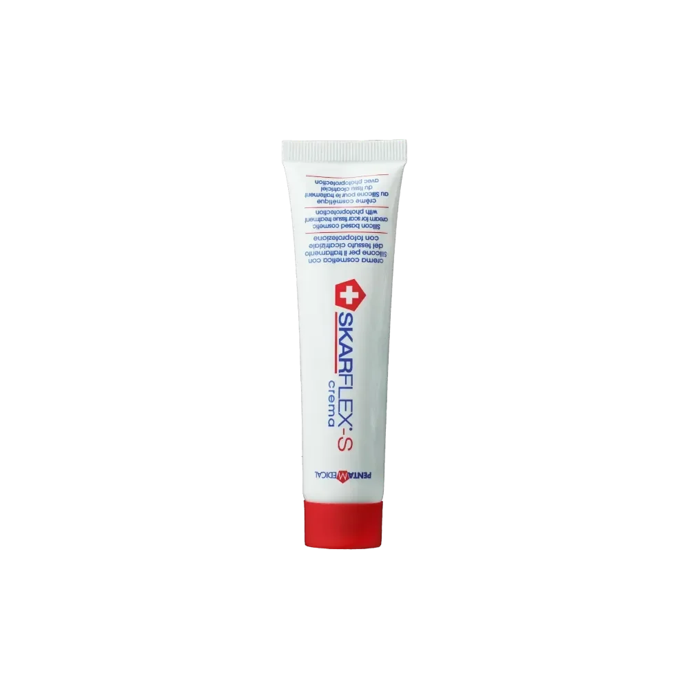 SKARFLEX S Crème est un traitement dermo-cosmétique intensif spécifiquement formulé pour améliorer l'aspect et la texture du tissu cicatriciel. Sa particularité réside dans l'intégration de dérivés siliconés, qui optimisent l'action des autres principes actifs. Les dérivés de silicone agissent en favorisant l'hydratation de la couche cornée de la peau, ce qui est essentiel pour une cicatrisation saine en réduisant la perte d'eau qui caractérise souvent la surproduction de tissu cicatriciel (cicatrices hypertrophiques et chéloïdes). La crème combine ainsi des propriétés lissantes, réparatrices, hydratantes, antioxydantes et anti-rougeurs pour un traitement complet des différents types de cicatrices.