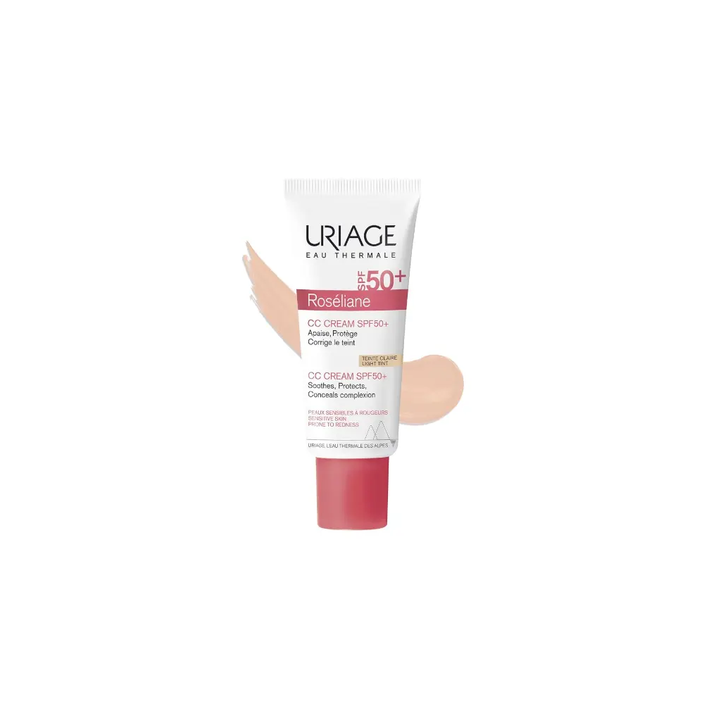 Uriage Roséliane CC Crème SPF50+ Teinte Claire 40 ml est une CC crème riche en eau thermale d'Uriage. spécialement formulée pour les peaux sensibles à rougeurs.
