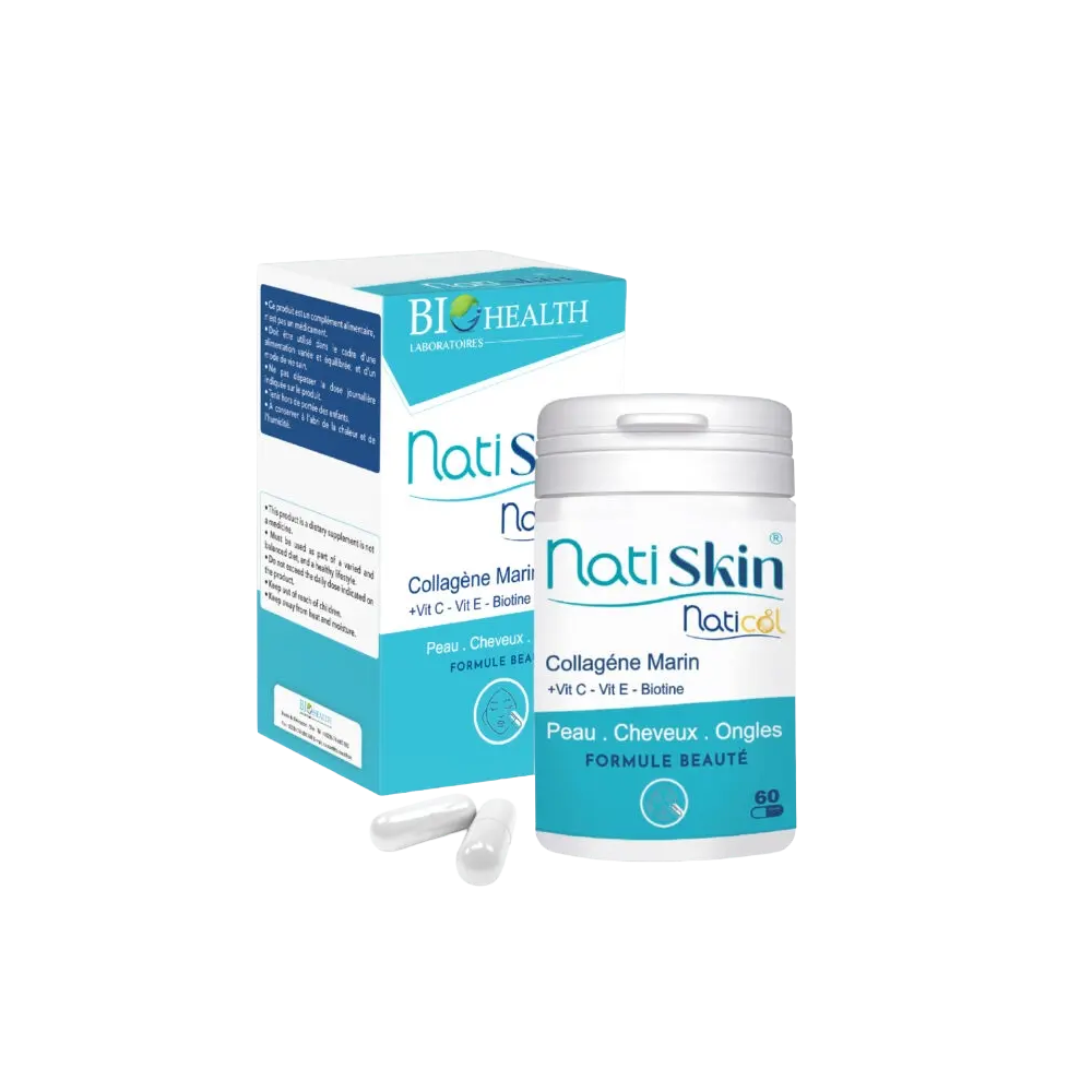 Natiskin est notre formule beauté. Une combinaison innovante de plusieurs actifs à l'action ciblée sur la peau. les cheveux et les ongles.