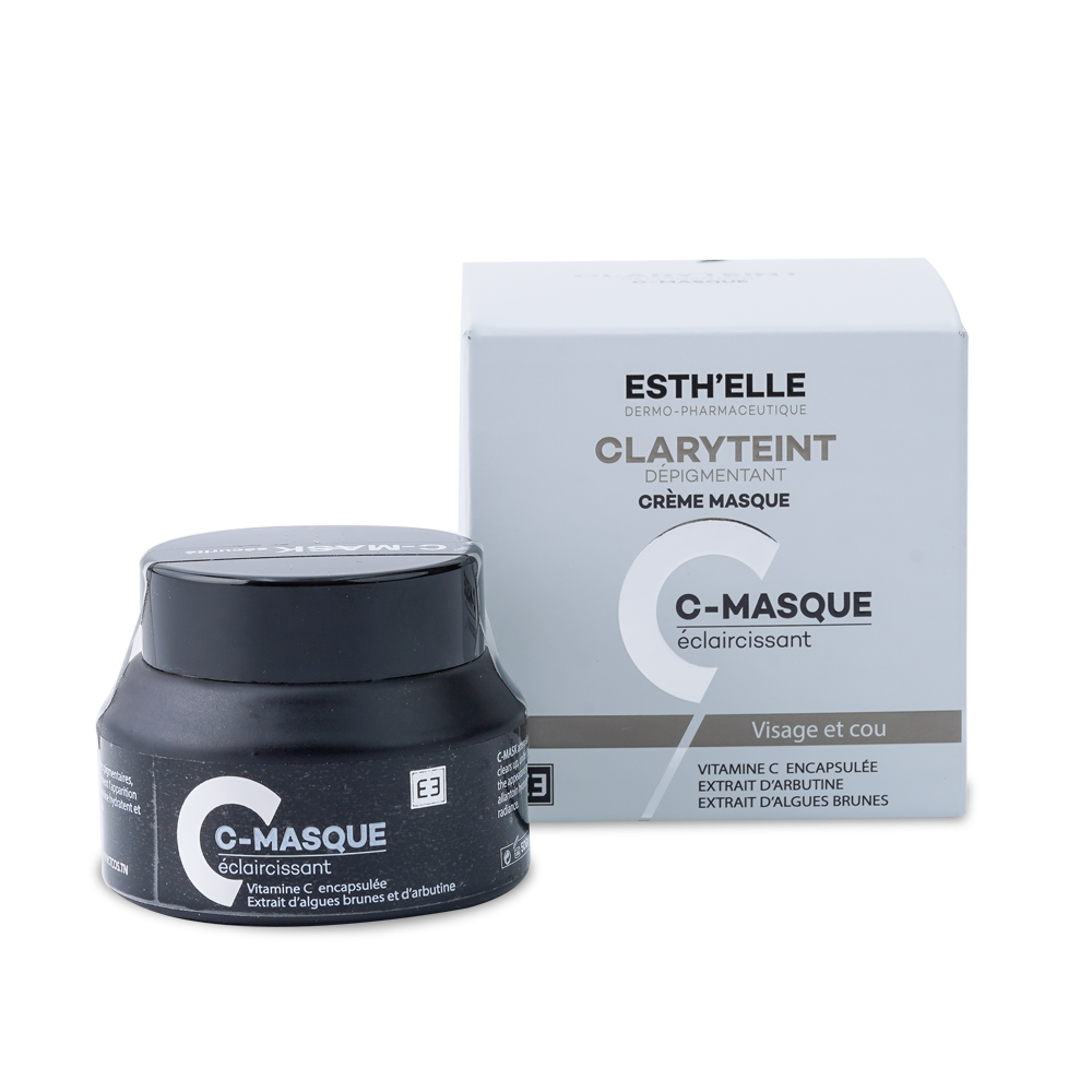 L'ESTHELLE CLARYTEINT C-MASQUE DEPIGMENTANT 50GR est un masque visage concentré en actifs éclaircissants et anti-âge, conçu pour corriger et prévenir l'apparition des taches pigmentaires. Grâce à son complexe dépigmentant exclusif WHITESPHERE™ PREMIUM, il agit en surface et en profondeur sur les taches existantes (mélasma, lentigo, hyperpigmentation post-inflammatoire) tout en bloquant la production de mélanine responsable de leur formation. Enrichi en Vitamine C stabilisée et encapsulée et en agents hydratants, ce masque apporte un véritable "coup d'éclat" au teint terne et fatigué. Il hydrate intensément, stimule la synthèse de collagène pour améliorer la souplesse et la fermeté de la peau, et offre une action antioxydante pour protéger contre le stress oxydatif. Le résultat est une peau repulpée, un teint unifié, frais et lumineux.
