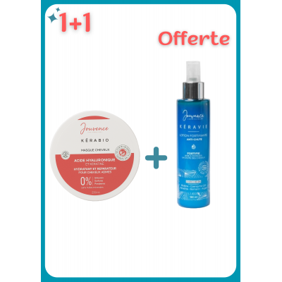 Le PACK JOUVENCE (souvent associé à des gammes spécialisées comme KERABIO et KERAVIE) est un duo de soins capillaires conçu pour traiter les cheveux de l'intérieur (masque) et renforcer le cuir chevelu pour lutter contre la chute (lotion). Ce pack cible les cheveux fragilisés, cassants ou sujets à la chute saisonnière ou réactive.