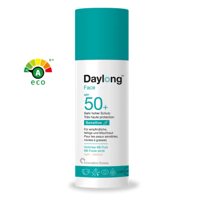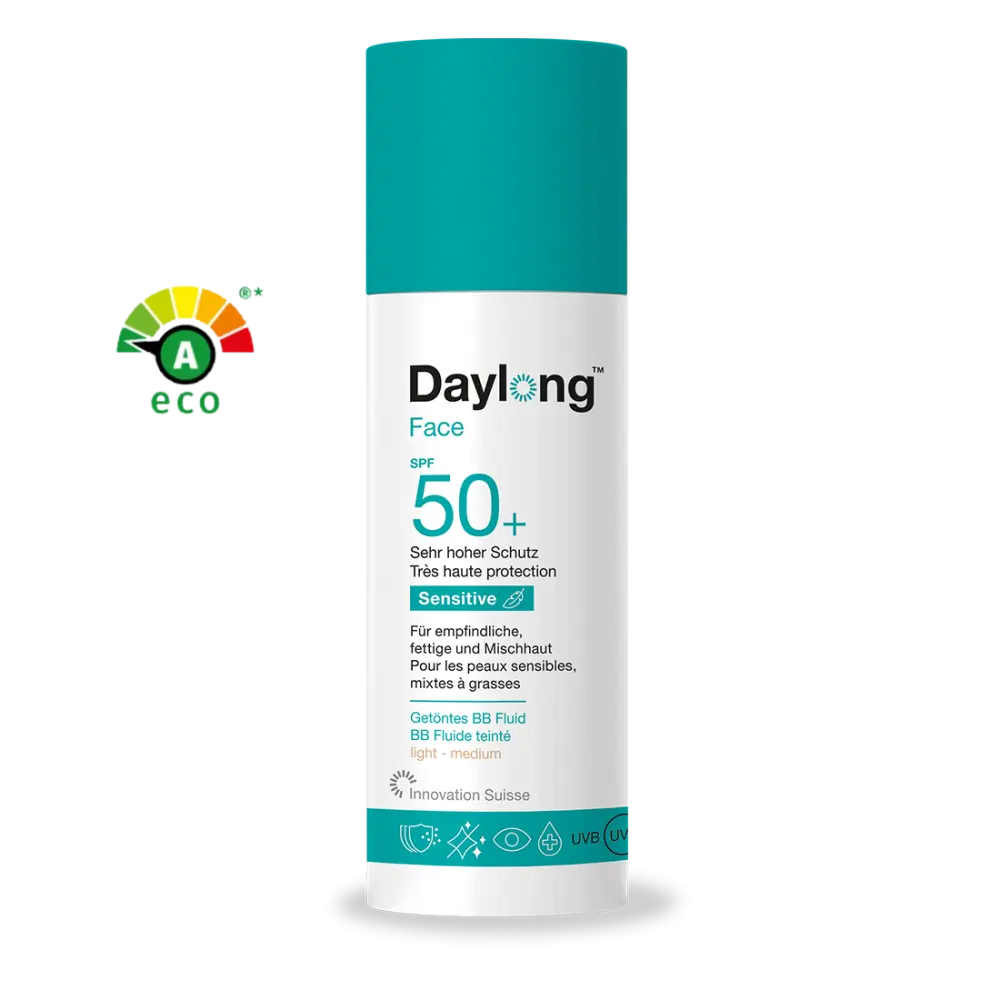 DAYLONG FACE SPF 50+ BB TEINTE LIGHT MEDIUM 50ML est un fluide teinté quotidien qui combine une très haute protection solaire et les bénéfices d'une BB crème, spécialement conçu pour les peaux sensibles, mixtes à grasses, voire à tendance allergique au soleil. Il offre une solution tout-en-un pour protéger, unifier et matifier le teint.