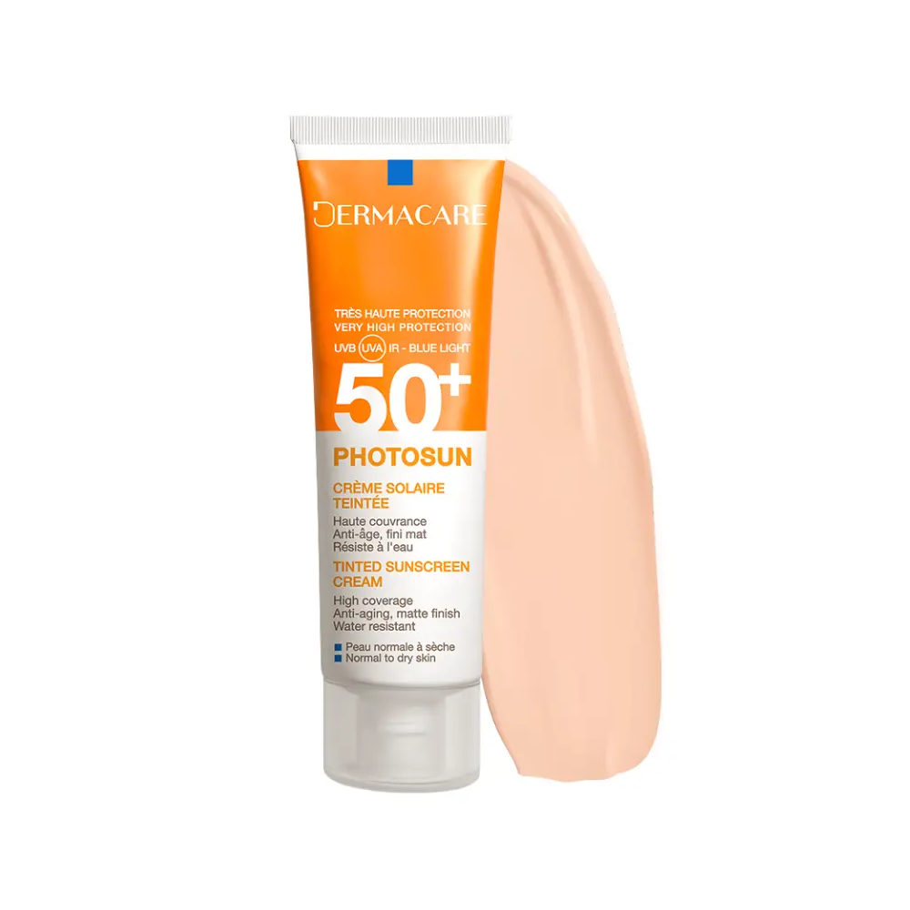 La Dermacare Photosun Crème Protectrice Teintée SPF50+ est un produit 2-en-1 : une protection solaire essentielle et un soin teinté unifiant. Elle protège efficacement contre les coups de soleil, le photovieillissement (rides, taches pigmentaires) et les dommages cellulaires profonds causés par le soleil. Sa formule est pensée pour offrir une protection optimale sans compromettre le confort et l'esthétique, particulièrement pour les peaux normales à sèches qui peuvent se sentir déshydratées avec d'autres textures solaires.