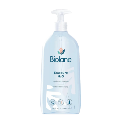L'Eau Pure H2O BIOLANE 350ML est une lotion nettoyante ultra-douce, sans rinçage, spécialement formulée pour la toilette quotidienne du visage, du corps et du siège de bébé, dès la naissance. Elle combine l'efficacité d'une solution micellaire pour capturer les impuretés avec la douceur d'une formule à 97% d'ingrédients d'origine naturelle. Elle nettoie parfaitement la peau délicate de bébé, éliminant salissures et impuretés sans agresser, tout en préservant l'équilibre naturel de l'épiderme. La peau est propre, douce et délicatement parfumée. Le flacon est équipé d'une pompe doseuse "1 seule main", très pratique, qui permet de délivrer la juste quantité de produit sur un coton tout en gardant l'autre main sur bébé pour sa sécurité.