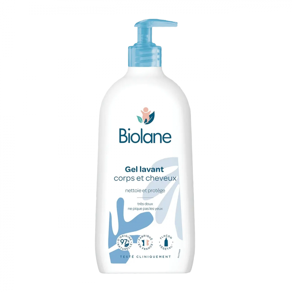 Le Gel Corps et Cheveux 2 en 1 Biolane en format 350 ml est un soin lavant ultra-pratique, spécialement conçu pour nettoyer en douceur la peau fragile et les cheveux fins des bébés et des enfants, et adapté dès la naissance. Sa formule haute tolérance, composée à 97% d'ingrédients d'origine naturelle, nettoie sans dessécher grâce à sa base lavante très douce et sans savon. Enrichi en un agent surgraissant, il aide à préserver le film hydrolipidique naturel de la peau, évitant ainsi les sensations d'inconfort et de tiraillement. Sa texture gel mousse légèrement, ne pique pas les yeux (formule à pH lacrymal), et laisse la peau et les cheveux de bébé souples, très doux et délicatement parfumés.