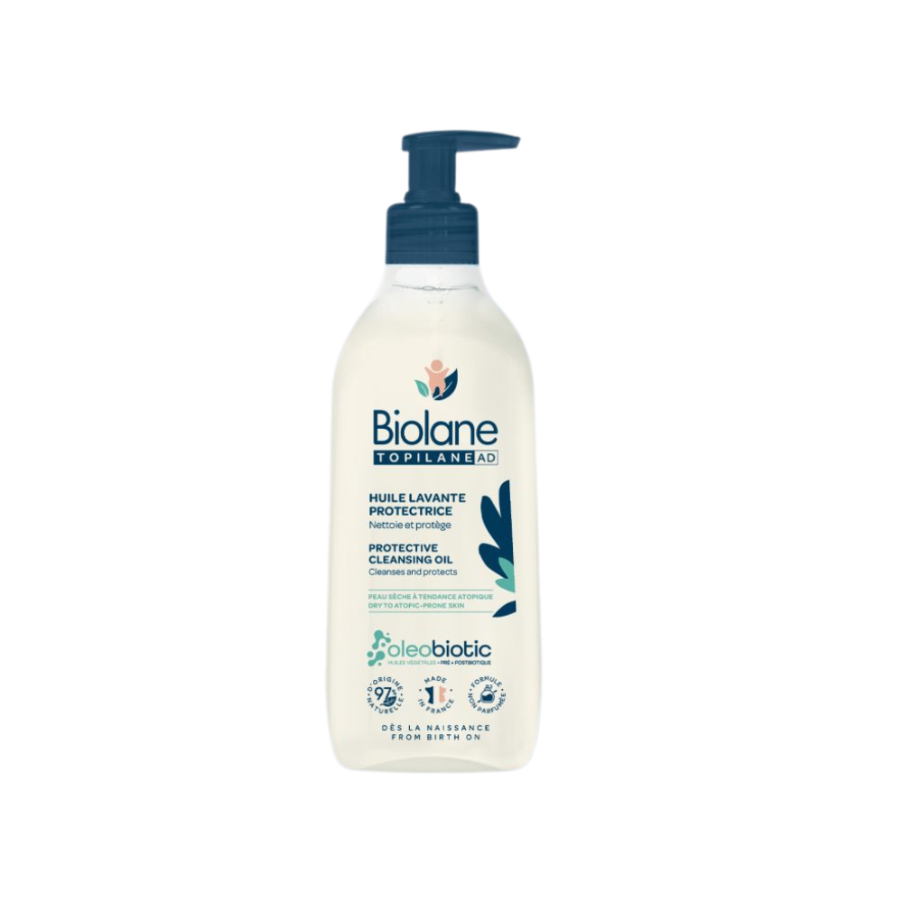 L'Huile Lavante Protectrice BIOLANE TOPILANE AD 350ML est un soin d'hygiène quotidienne spécialement conçu pour les peaux très sèches, sensibles et à tendance atopique (eczéma) des bébés, dès la naissance. Sa texture huileuse unique se transforme en un lait fin au contact de l'eau, assurant un nettoyage ultra-doux du corps et du visage, y compris les cheveux. Formulée pour minimiser le risque de dessèchement et d'irritations, cette huile lavante a une puissante action dermo-protectrice et relipidante. Elle aide à apaiser les sensations de démangeaisons et de tiraillements en renforçant la barrière cutanée.