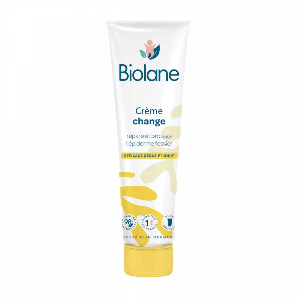 La Crème Change Biolane en tube de 100 ml est un soin dermo-pédiatrique spécialement conçu pour protéger, réparer et apaiser efficacement les irritations et les rougeurs du siège chez le nourrisson, dès la naissance. Formulé avec 98% d'ingrédients d'origine naturelle, ce soin riche crée un film protecteur naturel sur l'épiderme fessier de bébé, l'isolant de l'humidité et du frottement de la couche. Sa formule haute tolérance, testée cliniquement sous contrôle médical, convient aux peaux les plus sensibles.