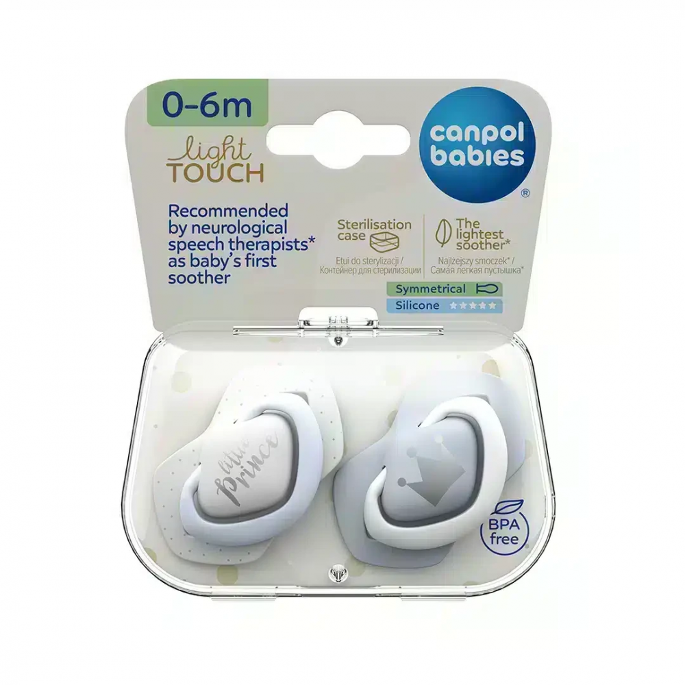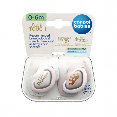La sucette universelle Canpol Babies "Royal Baby" est spécialement conçue pour répondre au besoin inné de succion des nourrissons de 0 à 6 mois. Dotée d'une tétine en silicone ultra-douce et exceptionnellement légère, elle demande moins d'effort à bébé lors de la succion, garantissant ainsi un confort optimal. Son bouclier profilé est léger et n'alourdit pas l'occlusion, permettant une respiration libre qui, selon les spécialistes, a un impact significatif sur le bon développement de la cavité buccale. Le design "Royal Baby" apporte une touche d'élégance avec ses motifs délicats. Une poignée confortable est intégrée pour faciliter la manipulation par les parents et permettre l'attache d'un porte-sucette. Cette sucette est un choix idéal pour apaiser votre tout-petit et favoriser un développement bucco-dentaire sain.