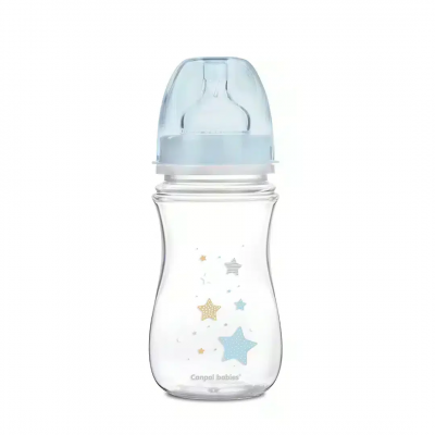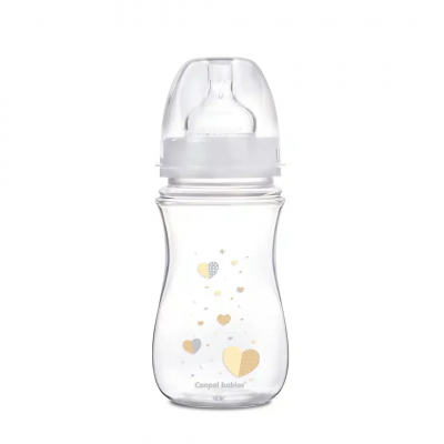 Ce biberon anticolique Canpol Babies, d'une capacité de 240 ml, est spécialement conçu pour les bébés de 3 mois et plus, visant à rendre l'alimentation plus confortable et à réduire les désagréments digestifs. Fabriqué en polypropylène (PP) de haute qualité, un matériau léger, durable et naturellement sans Bisphénol A (BPA Free), il assure une sécurité maximale pour votre enfant. Son design classique est ergonomique pour une prise en main facile. Le biberon est équipé d'une tétine en silicone anticolique dont le débit est adapté aux bébés de 3 mois et plus. Cette tétine est conçue pour minimiser l'ingestion d'air pendant la tétée, ce qui aide à réduire les gaz, les régurgitations et les coliques. La graduation claire sur le biberon permet de mesurer précisément les quantités de lait. Ce biberon est une solution fiable pour une alimentation sereine et le bien-être digestif de votre bébé.