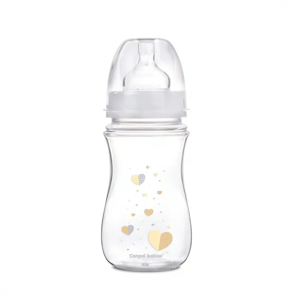 Ce biberon anticolique Canpol Babies, d'une capacité de 240 ml, est spécialement conçu pour les bébés de 3 mois et plus, visant à rendre l'alimentation plus confortable et à réduire les désagréments digestifs. Fabriqué en polypropylène (PP) de haute qualité, un matériau léger, durable et naturellement sans Bisphénol A (BPA Free), il assure une sécurité maximale pour votre enfant. Son design classique est ergonomique pour une prise en main facile. Le biberon est équipé d'une tétine en silicone anticolique dont le débit est adapté aux bébés de 3 mois et plus. Cette tétine est conçue pour minimiser l'ingestion d'air pendant la tétée, ce qui aide à réduire les gaz, les régurgitations et les coliques. La graduation claire sur le biberon permet de mesurer précisément les quantités de lait. Ce biberon est une solution fiable pour une alimentation sereine et le bien-être digestif de votre bébé.