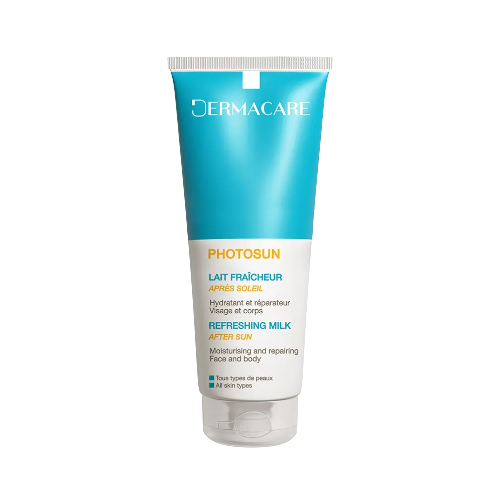 Dermacare Photosun le Lait fraicheur est soin à la fois après-soleil réparateur pour le visage et lait hydratant pour le corps il intervient après l'exposition en complément des produits solaires