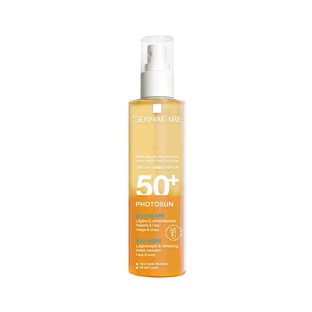 La Dermacare Photosun Eau Solaire SPF50+ est conçue pour offrir une très haute protection contre les rayons UVA et UVB, responsables des coups de soleil, du vieillissement cutané prématuré et des dommages cellulaires. Elle est idéale pour les personnes qui n'apprécient pas les textures épaisses des écrans solaires classiques et qui recherchent une protection efficace et agréable à porter, même sous forte chaleur.
