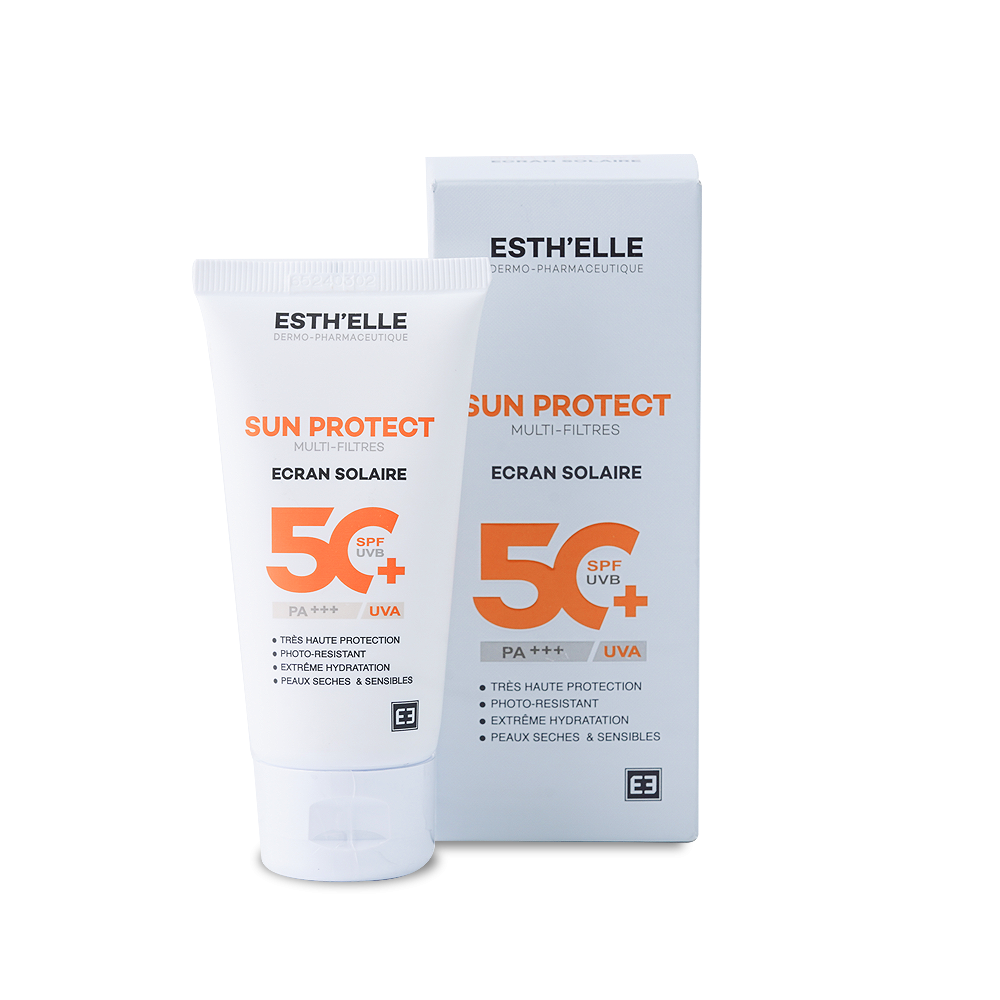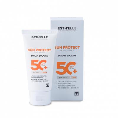 L'ESTHELLE SUN PROTECT INVISIBLE SPF50+ est un soin solaire visage qui offre une très haute protection à large spectre (SPF 50+, PA+++) contre les rayons UVA et UVB, essentiels pour prévenir les coups de soleil, le photo-vieillissement et l'apparition de taches brunes. Ce soin se distingue par sa texture invisible qui ne laisse ni traces blanches, ni sensation grasse ou collante sur la peau. En plus de sa fonction protectrice, sa formule enrichie en actifs hydratants et antioxydants lui confère des propriétés anti-âge, permettant de préserver l'élasticité et la fermeté de la peau. Sa légèreté et son fini sec le rendent agréable à utiliser au quotidien, même sous le maquillage.