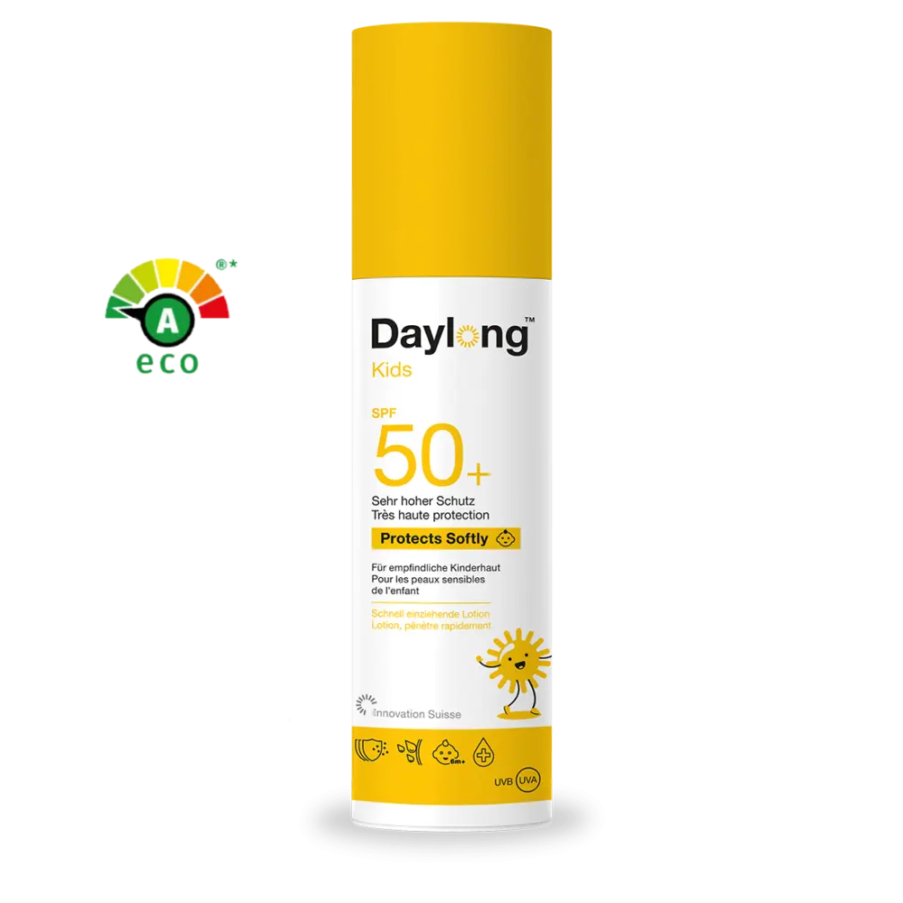 DAYLONG KIDS LAIT SOLAIRE SPF50+ 150ML est un lait solaire haute tolérance et très haute protection, spécialement formulé pour la peau délicate et sensible des enfants et des bébés (dès 6 mois). Conçu pour résister aux jeux et aux baignades, il offre une défense optimale contre les rayons UV tout en respectant la fragilité de leur épiderme.