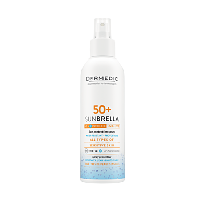 - Ne pas exposer directement les bébés et jeunes enfants au soleil. Pour eux, utilisez des produits spécifiques comme le "DERMEDIC BABY SUNBRELLA SPRAY SPF 50+".