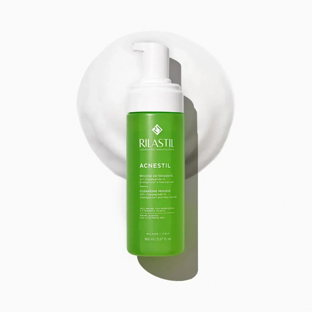 La mousse nettoyante RILASTIL ACNESTIL est un soin d'hygiène quotidienne, spécifiquement conçu pour les peaux mixtes à grasses et à tendance acnéique. Sa formule, ultra-douce et sans savon, agit en profondeur pour nettoyer la peau et réguler l'excès de sébum. Elle est enrichie en Azeloglycine et en Nicotinamide (vitamine B3), deux actifs qui purifient la peau, réduisent les imperfections et préviennent la prolifération de la bactérie responsable de l'acné. La mousse contient également de la Dipotsium Glycyrrhizate qui apaise les irritations et les rougeurs, pour un confort immédiat. Sa texture mousse, légère et onctueuse, est agréable à utiliser et se rince facilement, laissant la peau propre, fraîche, douce et purifiée. Utilisée au quotidien, elle aide à restaurer l'équilibre de la peau et à prévenir la réapparition des imperfections.