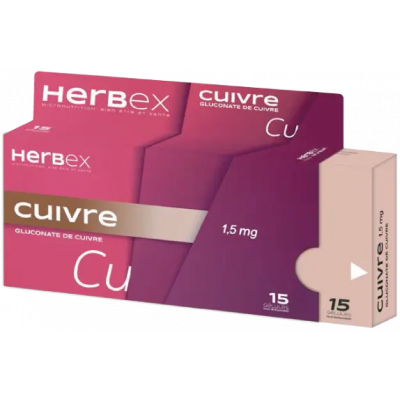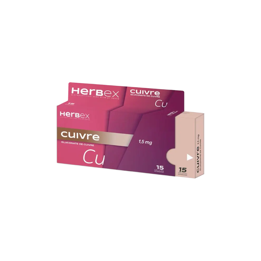 HERBEX CUIVRE est un complément alimentaire conçu pour soutenir le bon fonctionnement de l'organisme. Le cuivre est un oligo-élément essentiel qui joue un rôle crucial dans de nombreux processus biologiques, notamment la fonction immunitaire, la protection cellulaire et la pigmentation de la peau et des cheveux.