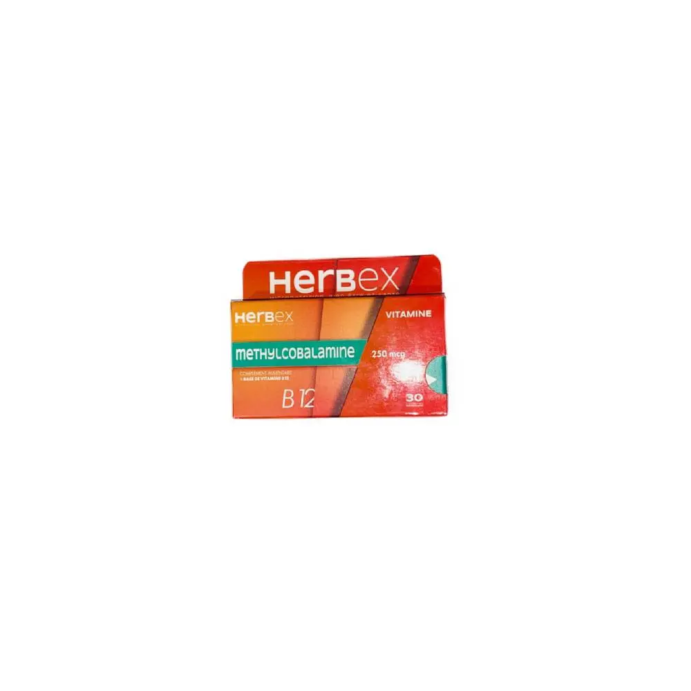 HERBEX METHYLCOBALAMINE 250 MCG est un complément alimentaire conçu pour soutenir le système nerveux, la production d'énergie et le bien-être général. La méthylcobalamine est une forme active et biodisponible de la vitamine B12, ce qui la rend plus facilement utilisable par le corps.