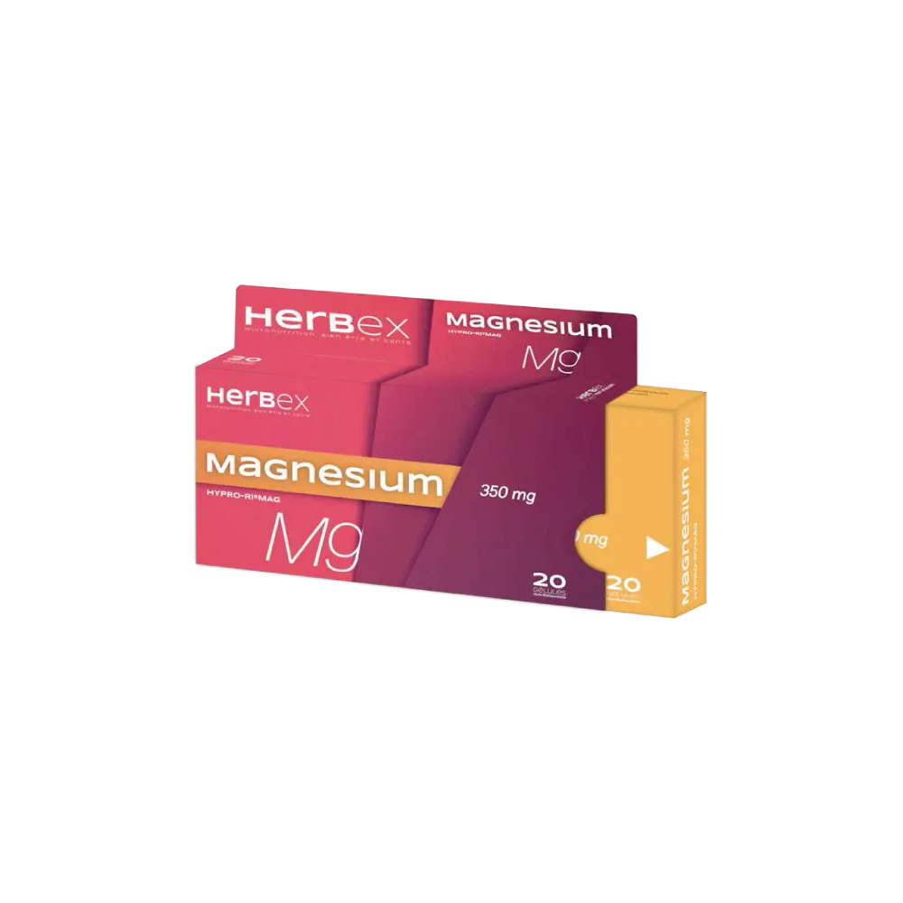 Le complément alimentaire MAGNESIUM 350 MG de HERBEX est une solution efficace pour les personnes qui souffrent de carences en magnésium, un minéral impliqué dans plus de 300 réactions biochimiques dans le corps. Une carence peut se manifester par de la fatigue, des crampes musculaires, de l'irritabilité ou des troubles du sommeil. Ce complément est un allié précieux en période de stress, de fatigue intense ou pour les sportifs. Les gélules sont faciles à prendre et peuvent être intégrées facilement à votre routine quotidienne pour un soutien continu. Caractéristiques et Bénéfices Clés HERBEX MAGNESIUM 350 MG est un complément alimentaire conçu pour aider à réduire la fatigue, soutenir le bon fonctionnement des muscles et du système nerveux, et favoriser le bien-être psychologique. Une dose de 350 mg par gélule aide à couvrir les besoins quotidiens en magnésium. Réduction de la fatigue : Le magnésium joue un rôle essentiel dans le métabolisme énergétique et aide à réduire la fatigue et l'épuisement. Fonction musculaire et nerveuse : Il est indispensable à la fonction musculaire normale et au bon fonctionnement du système nerveux, contribuant à une transmission de l'influx nerveux optimale. Bien-être psychologique : Un apport suffisant en magnésium contribue à maintenir une fonction psychologique normale et à réduire le stress. Dose élevée : La concentration de 350 mg par gélule est idéale pour combler les carences et répondre aux besoins accrus. Ingrédients Magnésium (sous forme d'oxyde de magnésium) Autres ingrédients : Excipients, gélule. Type de Peaux ou Cheveux / Indications Ce complément alimentaire est adapté pour : Les adultes et les adolescents. Les personnes souffrant de fatigue, de stress, de crampes musculaires ou de troubles du sommeil. Celles qui cherchent à soutenir leur fonction nerveuse et musculaire. Mode d'Emploi Prendre une gélule par jour avec un grand verre d'eau, de préférence au cours d'un repas. Précautions d'Usage Ne pas dépasser la dose journalière recommandée. Ne doit pas se substituer à une alimentation variée et équilibrée et à un mode de vie sain. Tenir hors de la portée des jeunes enfants. Conserver à l'abri de la lumière, de la chaleur et de l'humidité.