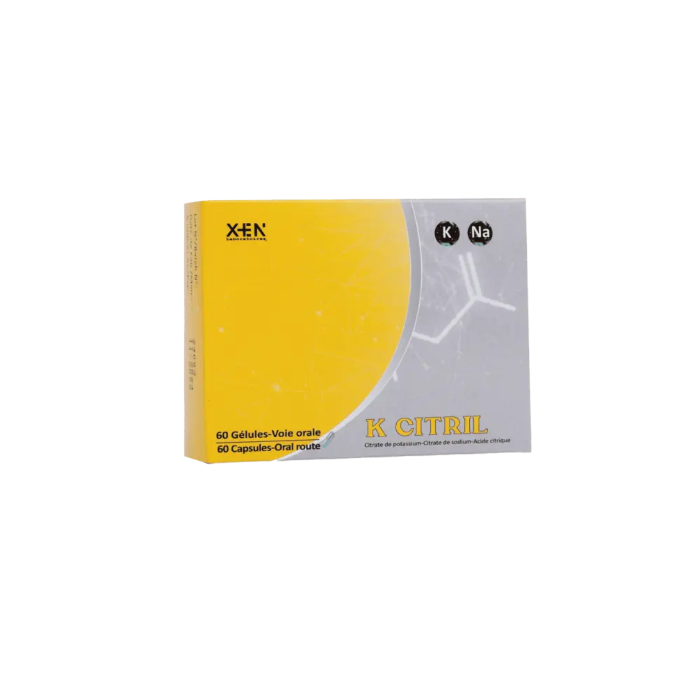 XEN K CITRIL est un complément alimentaire conçu pour aider à la prévention des calculs rénaux d'origine calcique. Sa formule unique contient du citrate de potassium et de la vitamine K. Le citrate de potassium aide à augmenter le pH urinaire et la concentration en citrate, ce qui rend le milieu moins favorable à la formation des cristaux d'oxalate de calcium. La vitamine K contribue à une coagulation sanguine normale et au maintien d'une ossature normale. Ce complément est idéal pour les personnes ayant des antécédents de calculs rénaux ou celles qui cherchent à maintenir l'équilibre de leur système urinaire.
