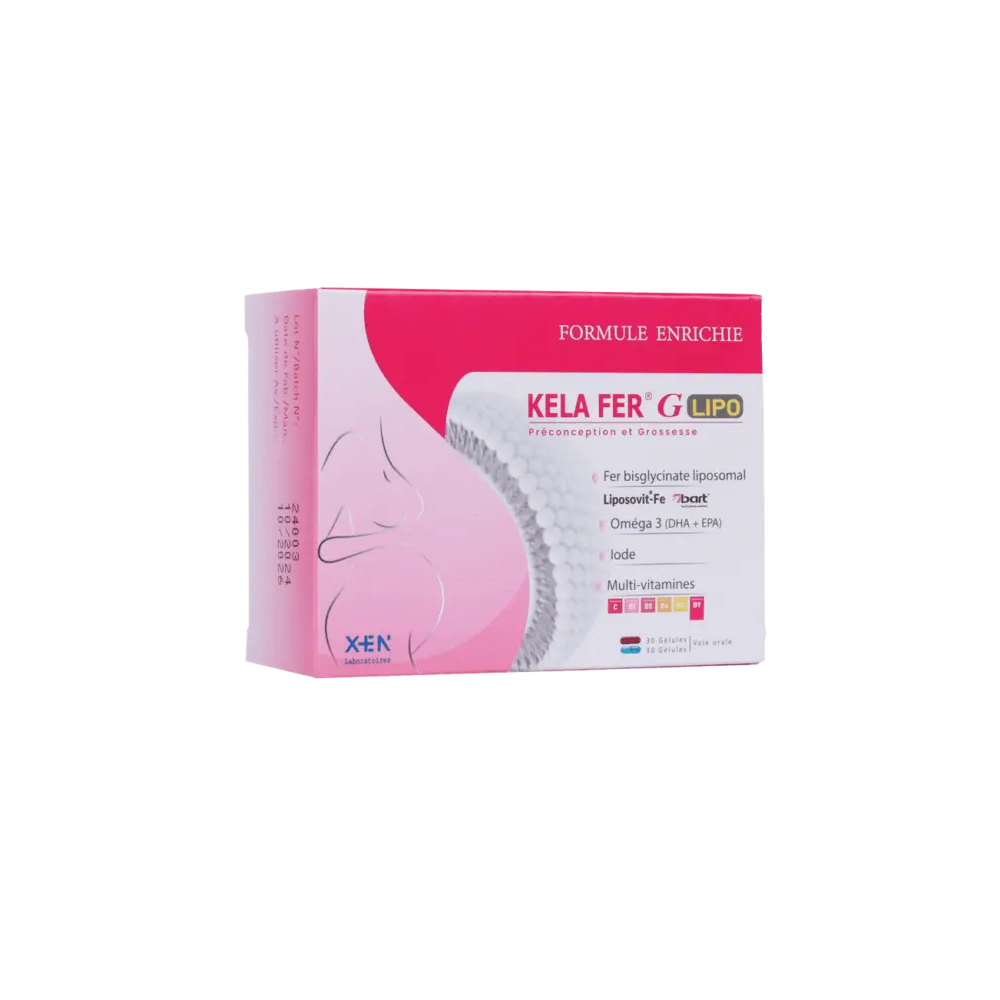XEN KELA FER G LIPO est un complément alimentaire à base de fer liposomal et de vitamines C, B6 et B12, conçu pour lutter efficacement contre la fatigue et les carences en fer. Le fer liposomal, sous forme micro-encapsulée, offre une biodisponibilité optimale et est particulièrement doux pour l'estomac, évitant ainsi les troubles digestifs fréquents (nausées, constipation) liés à la prise de fer. Le complexe de vitamines agit en synergie pour améliorer l'absorption du fer et soutenir le métabolisme énergétique. Ce complément est idéal pour les personnes souffrant d'anémie ferriprive, les femmes enceintes ou en période de règles abondantes, les sportifs et les végétariens.
