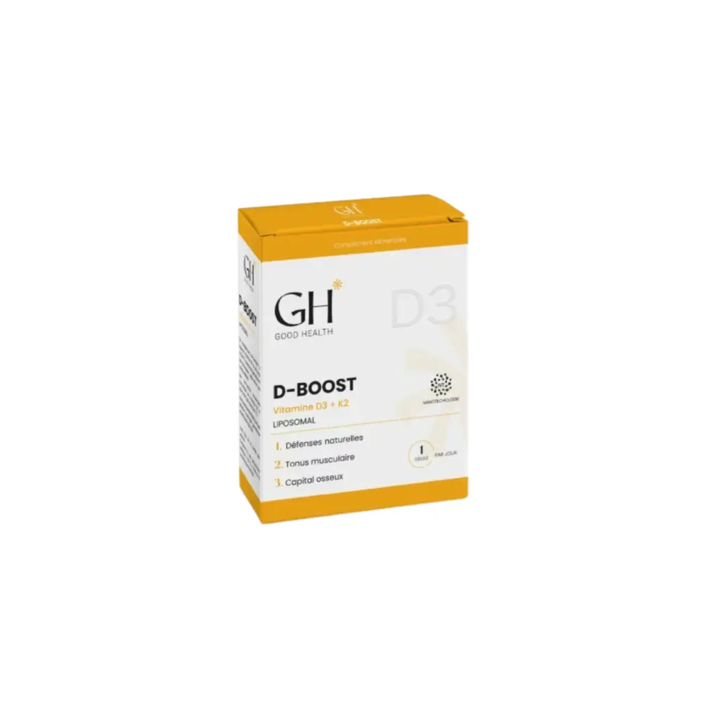 GOOD HEALTH D-BOOST VITAMINE D3 + K2 est un complément alimentaire conçu pour soutenir la santé des os, des dents et le bon fonctionnement du système immunitaire. La synergie des vitamines D3 et K2 est essentielle pour maximiser leur efficacité et assurer une bonne utilisation du calcium dans le corps.