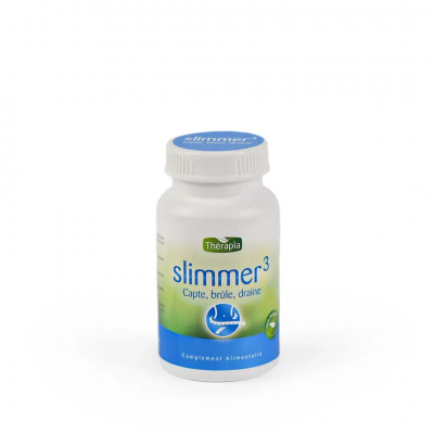 THERAPIA SLIMMER 3 est un complément alimentaire minceur formulé pour agir sur les trois principaux leviers de la perte de poids : la combustion des graisses, la captation des nutriments, et l'élimination de l'eau. Ce produit concentre les bénéfices de plusieurs extraits de plantes reconnues en phytothérapie pour leur action synergique dans le cadre d'un régime amincissant et d'un mode de vie sain. Son objectif est d'optimiser le processus de minceur en ciblant à la fois la dégradation des lipides stockés et la réduction de l'absorption des graisses et des sucres issus de l'alimentation.