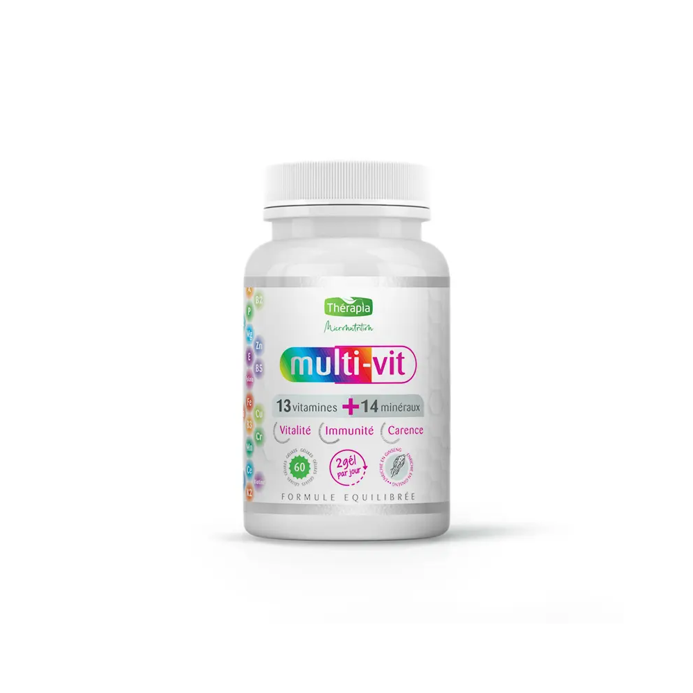 Ce complément alimentaire est un complexe multivitaminé et multiminéral complet, conçu pour lutter efficacement contre les baisses de forme et le surmenage. Il apporte un ensemble de 13 vitamines et 14 minéraux essentiels qui couvrent les besoins quotidiens de l'organisme et soutiennent de multiples fonctions biologiques. Sa formule est enrichie en extrait de Ginseng, traditionnellement reconnu pour ses propriétés tonifiantes, qui agit en synergie avec les micronutriments pour aider à retrouver tonus et vitalité aussi bien sur le plan physique qu'intellectuel. C'est un allié idéal lors des périodes de fatigue, de convalescence, ou de stress accru.