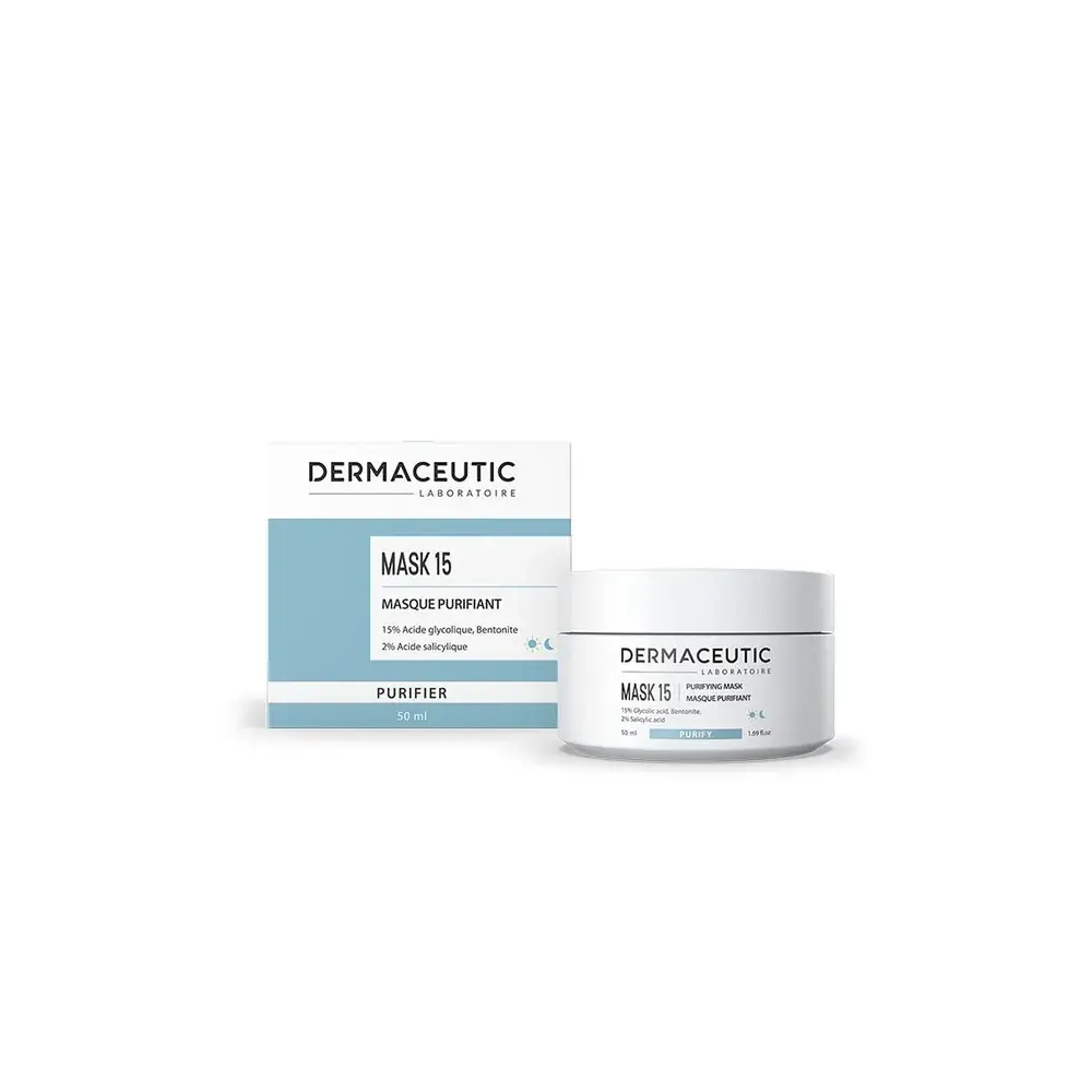DERMACEUTIC MASK 15 est un masque sébo-régulateur et exfoliant, spécialement conçu pour les peaux grasses, à tendance acnéique et à imperfections. Sa formule, riche en acide glycolique et en argile bentonite, purifie la peau en profondeur, réduit l'excès de sébum et affine le grain de peau pour un teint plus mat et plus sain.