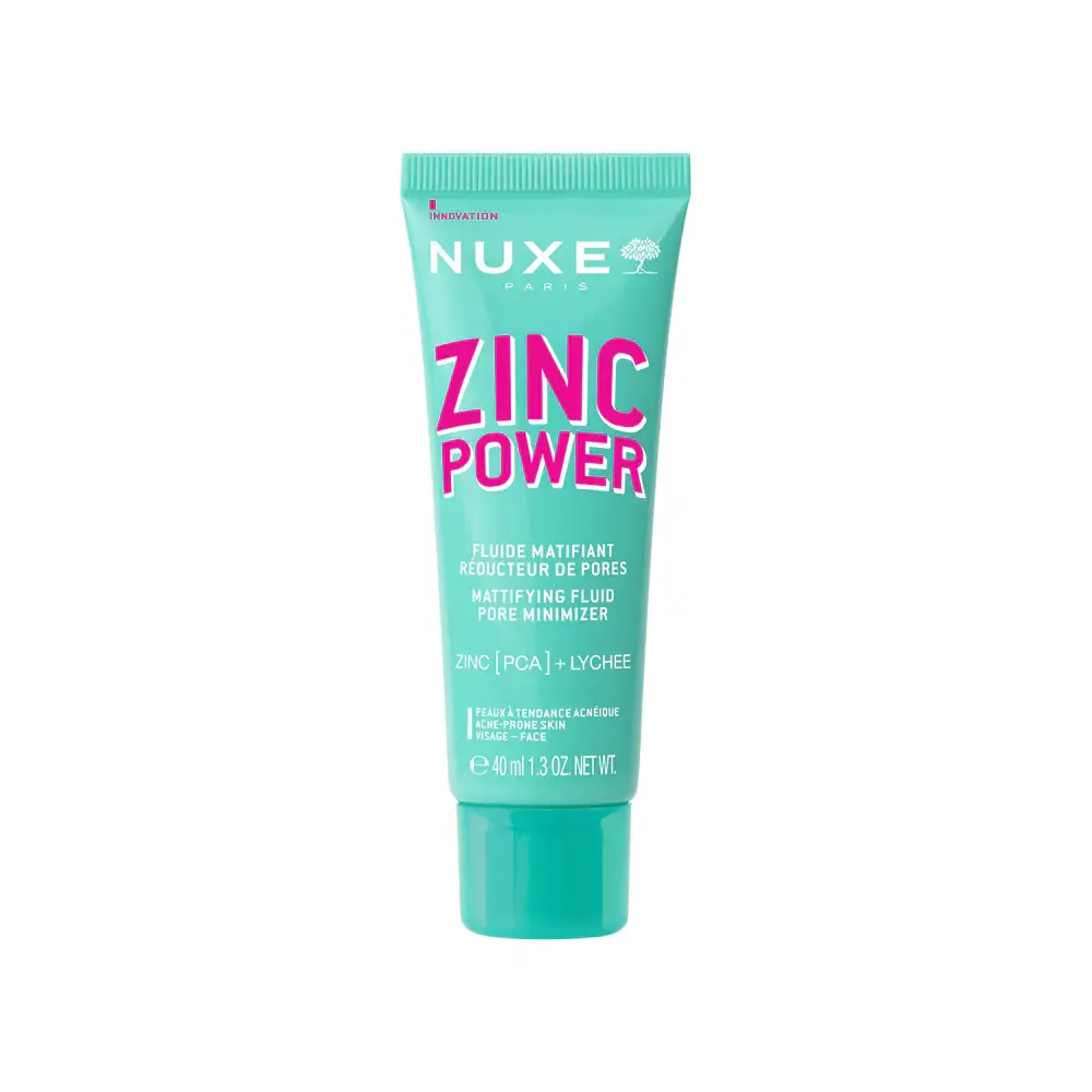 Le Fluide Matifiant Réducteur de Pores NUXE ZINC POWER est un soin hydratant essentiel conçu pour les peaux mixtes à grasses à tendance acnéique. Il représente l'étape de soin et d'hydratation quotidienne de la routine anti-imperfections ZINC POWER. Ce fluide léger et frais a une double action : il matifie immédiatement et durablement la peau en régulant l'excès de sébum, et il agit en profondeur pour resserrer les pores visibles et réduire les imperfections (boutons, points noirs). Sa texture légère pénètre rapidement sans laisser de film gras, offrant un fini mat confortable et non desséchant. Formulé avec le duo Zinc [PCA] et Extrait de Litchi, ce soin contribue à améliorer la qualité de la peau pour un teint plus homogène et un grain de peau affiné. Il contient 96% d'ingrédients d'origine naturelle, est végane et non comédogène.