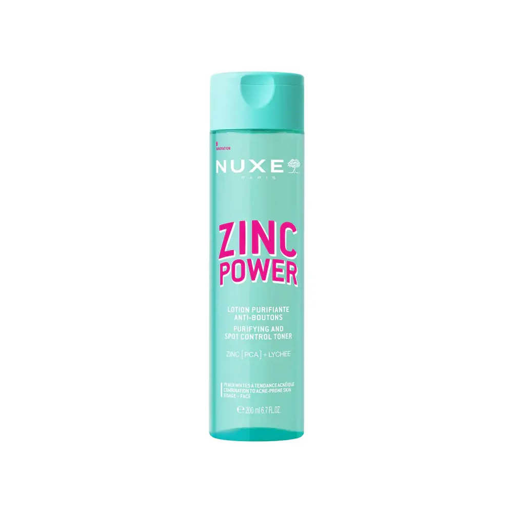 La Lotion Purifiante Anti-Boutons NUXE ZINC POWER est un soin de la gamme anti-imperfections spécifiquement formulé pour les peaux mixtes à grasses et à tendance acnéique. Elle représente la deuxième étape essentielle d'une routine visant à obtenir une "super peau", c'est-à-dire une peau purifiée, un grain de peau affiné et un éclat révélé. Cette lotion à la texture fraîche agit en profondeur pour purifier la peau, lisser son grain et réduire visiblement les imperfections telles que les boutons et les points noirs, tout en matifiant les zones de brillance. Sa formule végane est élaborée selon la charte "clean beauty" de NUXE et contient 99% d'ingrédients d'origine naturelle, dont des actifs phares comme le Zinc [PCA] et un extrait de Litchi issu de l'upcycling. Elle est non comédogène et a été testée sous contrôle dermatologique pour garantir son efficacité sans dessécher la peau. Son parfum addictif de pastèque-menthe offre une sensation de fraîcheur ultra-sensorielle lors de l'application.