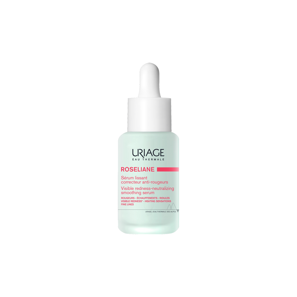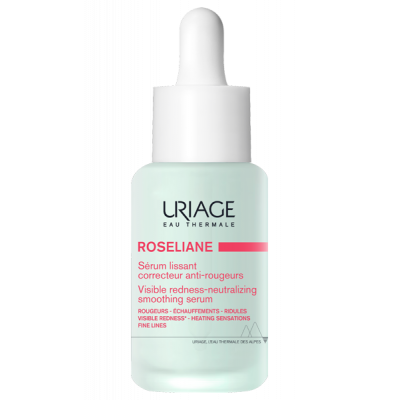 Le URIAGE ROSELIANE SERUM LISSANT CORRECTEUR ANTI ROUGEURS est un soin intensif spécialement conçu pour les peaux sensibles, réactives et sujettes aux rougeurs diffuses et à la couperose (rosacée). Ce sérum double action combine une correction immédiate des rougeurs et une action lissante anti-âge qui prévient le vieillissement prématuré des peaux sensibles. Sa texture fluide et fraîche est légèrement verte pour neutraliser optiquement les rougeurs dès l'application, offrant ainsi un teint plus uniforme. Formulé avec une haute concentration d'actifs apaisants et de l'Eau Thermale d'Uriage, il agit sur les facteurs clés responsables de l'inflammation et des problèmes vasculaires pour calmer durablement les sensations d'échauffement et de tiraillement. Il renforce la barrière cutanée, améliore la microcirculation et hydrate la peau en profondeur.