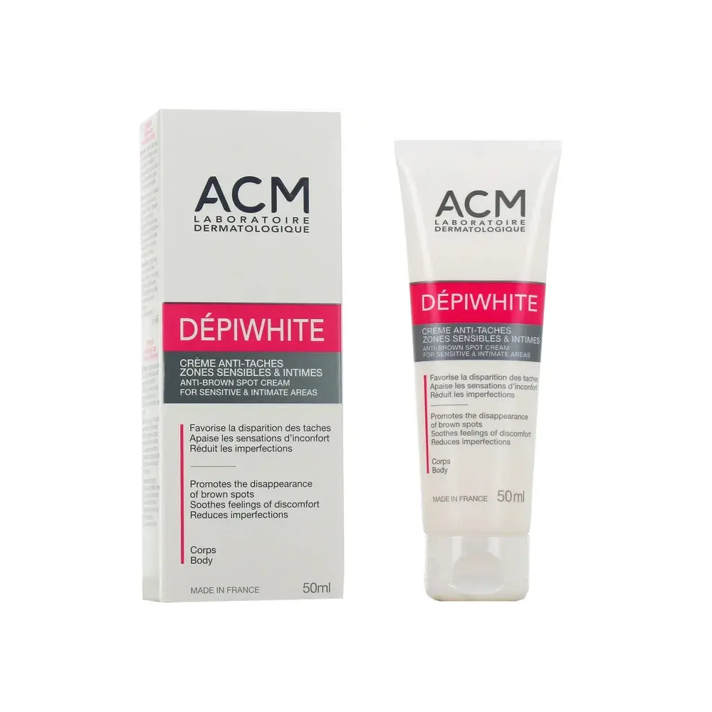 La crème DEPIWHITE d'ACM est un soin dépigmentant spécialement formulé pour les zones sensibles et intimes qui présentent des taches pigmentaires. Sa formule, douce et hautement tolérante, agit en profondeur pour éclaircir les taches brunes et unifier le teint sans irriter la peau fragile de ces zones. Elle contient un complexe d'actifs éclaircissants puissants, qui aide à réguler la production de mélanine. La crème est également enrichie en agents hydratants et apaisants qui procurent un confort immédiat et durable. Sa texture crème, onctueuse et non grasse, pénètre rapidement, offrant une hydratation intense et laissant la peau douce, apaisée et plus uniforme. Son utilisation régulière aide à réduire visiblement les taches brunes et à prévenir leur réapparition.