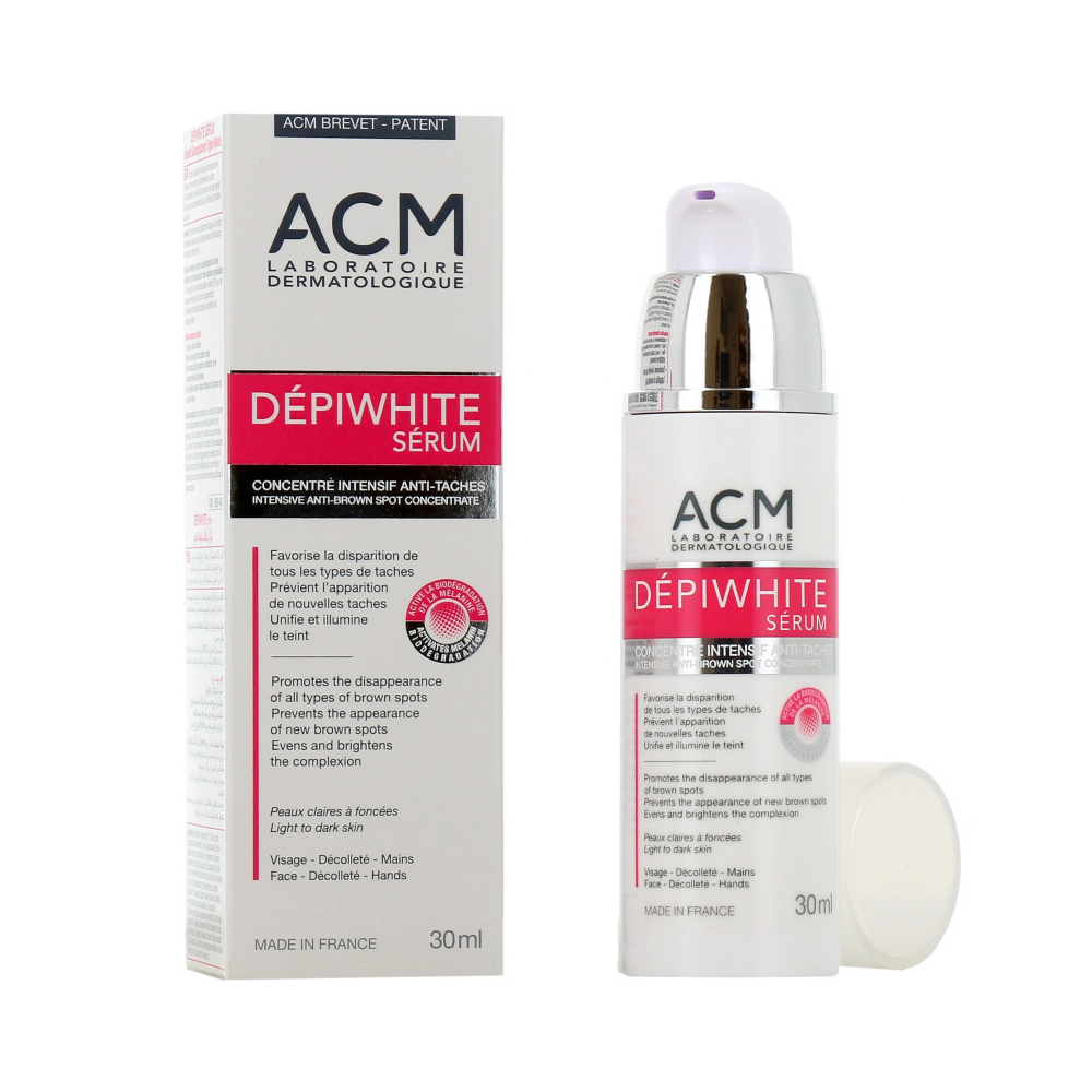 Le ACM DEPIWHITE SÉRUM CONCENTRÉ INTENSIF ANTI-TACHES 30ML est un soin dermatologique de pointe conçu pour cibler et corriger efficacement tous les types de taches pigmentaires, qu'elles soient dues à l'exposition solaire, au vieillissement cutané, au masque de grossesse (mélasma) ou aux marques post-inflammatoires. Sa formule ultra-concentrée agit en profondeur pour unifier le teint, réduire l'intensité et la taille des taches existantes, et prévenir l'apparition de nouvelles irrégularités pigmentaires. Grâce à une combinaison synergique de 12 actifs dermatologiques puissants, ce sérum offre une action complète pour révéler un teint plus homogène, éclatant et lumineux, quelle que soit la carnation de peau. Sa texture fluide et légère pénètre rapidement sans laisser de film gras, assurant un confort optimal.