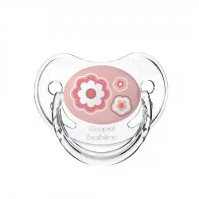 Sucette de la collection NewBorn Baby de Canpol Babies, spécialement conçue pour les bébés plus âgés de 6 à 18 mois. Cette sucette se distingue par son mamelon de forme orthodontique, développé pour favoriser le bon développement bucco-dentaire de l'enfant. Elle est fabriquée en silicone de la plus haute qualité, reconnu pour être inodore et insipide. Son bouclier profilé est équipé de trous de ventilation spéciaux qui assurent une bonne aération, évitant ainsi les irritations cutanées et les frottements autour de la bouche sensible. La conception globale vise à permettre une respiration et une déglutition de la salive faciles. Elle est disponible en plusieurs coloris et motifs (comme les étoiles bleues, le rose ou le beige) et est garantie sans BPA.