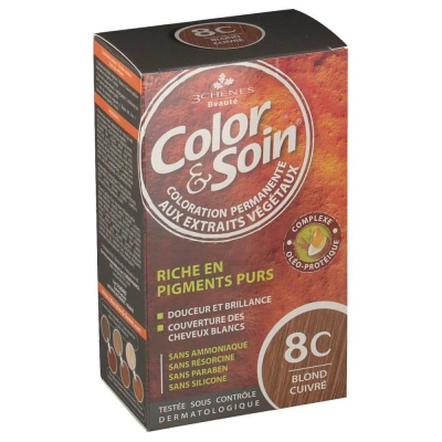 3 CHENES COLOR & SOIN COLORATION BLOND CUIVRE 8C est une coloration capillaire permanente formulée avec des extraits végétaux, conçue pour teindre les cheveux en couvrant les cheveux blancs, tout en les protégeant et en les soignant.
