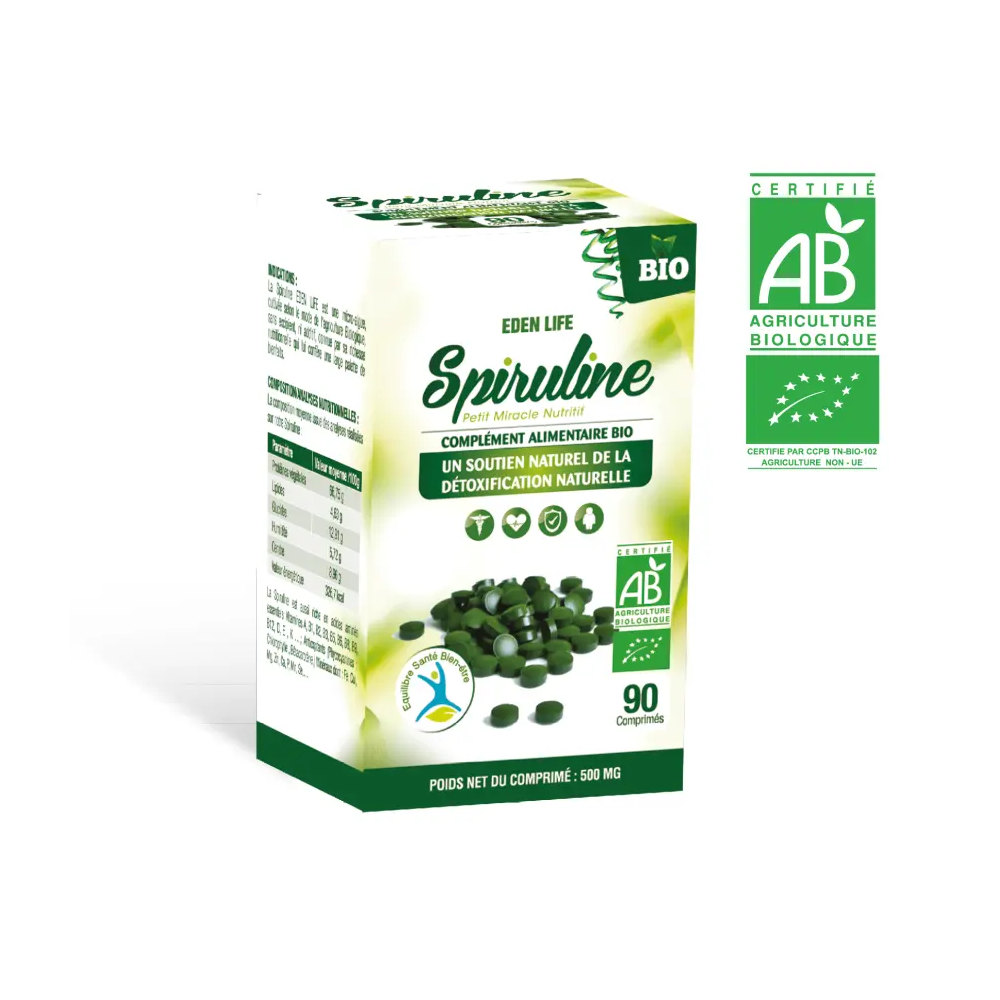 EDEN LIFE SPIRULINE 90 COMPRIMES est un complément alimentaire de haute qualité, composé à 100% de spiruline pure sous une forme pratique et facile à doser. La spiruline, une microalgue bleu-vert, est considérée comme un superaliment en raison de sa richesse nutritionnelle exceptionnelle. Cultivée dans un environnement contrôlé pour garantir sa pureté, elle est pressée en comprimés sans aucun excipient ni additif, ce qui permet de préserver l'intégrité de ses nutriments. Cette forme est idéale pour ceux qui souhaitent bénéficier des vertus de la spiruline sans avoir à gérer le goût ou la texture de la poudre.