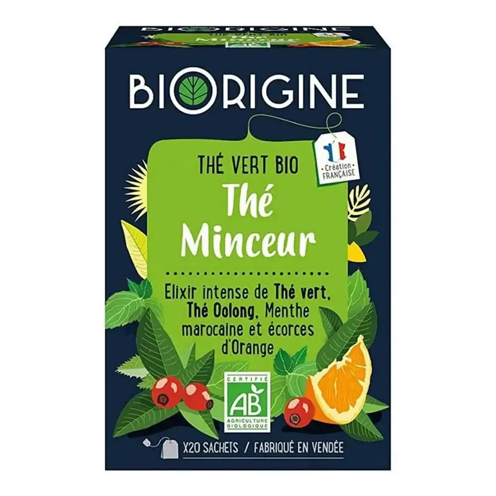 VITAVEA BIORIGINE THÉ MINCEUR 20 SACHETS est une infusion biologique conçue pour accompagner un programme de minceur de manière agréable et naturelle. Ce thé est une synergie d'extraits de plantes, notamment le thé vert et le thé oolong, reconnus pour leurs propriétés brûle-graisse et drainantes. Ce produit est un allié précieux pour ceux qui cherchent à stimuler leur métabolisme, à éliminer l'excès d'eau et à favoriser la perte de poids, tout en profitant d'une boisson chaude et savoureuse.