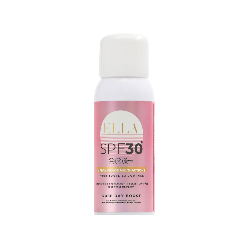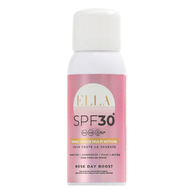 Le ELLA Rose Day Boost Spray Visage est un soin quotidien multifonction qui apporte un coup de boost à votre peau tout au long de la journée. Présenté sous forme de brume ultra-fine, il est enrichi en Eau de Rose de Damas et en actifs hydratants et protecteurs. Il rafraîchit, hydrate et tonifie la peau en un seul geste, réveillant l'éclat du teint tout en procurant une sensation immédiate d'apaisement et de confort. Sa formule est remarquable car elle offre une protection solaire SPF 30+ (UVA, UVB) et une protection antioxydante, aidant à lutter contre les agressions extérieures et le vieillissement prématuré. Il est idéal pour fixer le maquillage ou pour raviver la fraîcheur et l'éclat à tout moment.