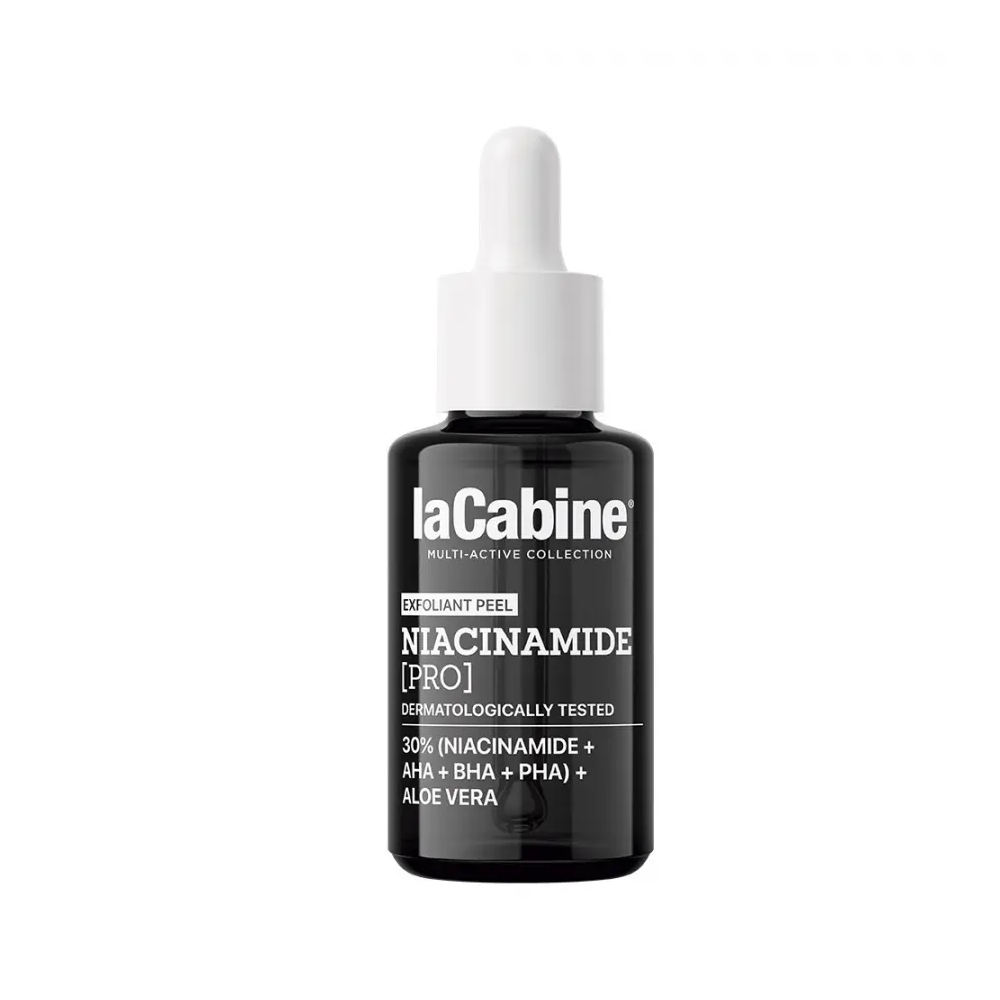 LA CABINE NIACINAMIDE PRO EXFOLIANT PEEL 30ML est un soin exfoliant visage concentré, conçu pour améliorer la texture de la peau, réduire les imperfections et révéler un teint plus lumineux. Sa formule, à base d'un complexe d'acides et de niacinamide, agit en douceur pour exfolier les cellules mortes et stimuler le renouvellement cellulaire. Ce produit est un allié précieux pour ceux qui cherchent à lisser leur grain de peau, à réduire l'apparence des pores et à atténuer les taches et les marques d'acné.