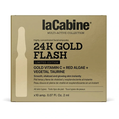 LA CABINE 24K GOLD FLASH ÉDITION LIMITÉE 10 AMPOULES est un soin visage concentré en format ampoule, conçu pour un effet tenseur et anti-fatigue immédiat. Ce produit est idéal pour les occasions spéciales ou lorsque la peau a besoin d'un coup d'éclat instantané. Sa formule unique est enrichie en particules d'Or 24K et combine des actifs anti-âge et illuminants pour revitaliser la peau et la rendre visiblement plus lisse et éclatante.