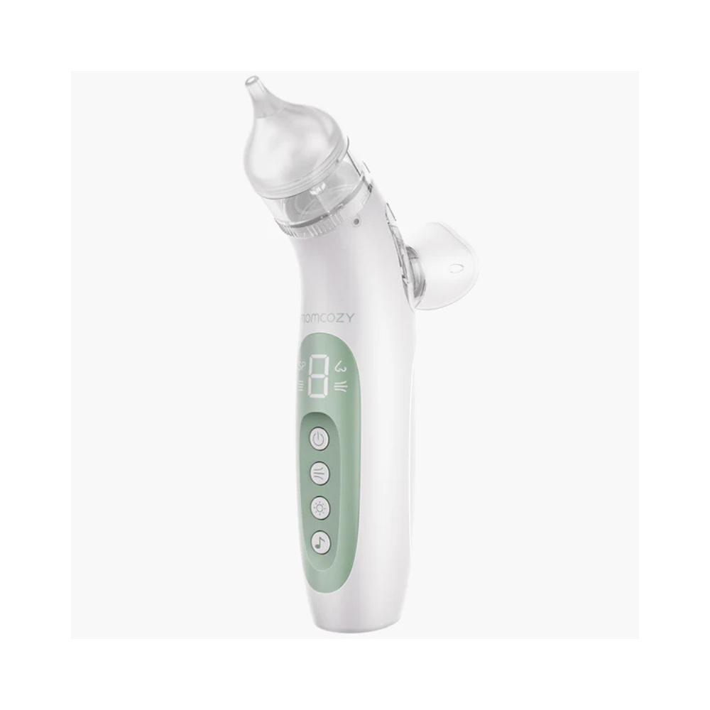 L'Aspirateur Nasal Électrique Momcozy 2-en-1 avec Spray (souvent appelé BreezyClear Pro™ ou une version similaire) est un dispositif multifonction conçu pour nettoyer le nez de bébé de manière douce, efficace et sans stress. Il se distingue par la combinaison unique d'une fonction de pulvérisation nasale et d'une aspiration électrique, simplifiant le dégagement des voies nasales.