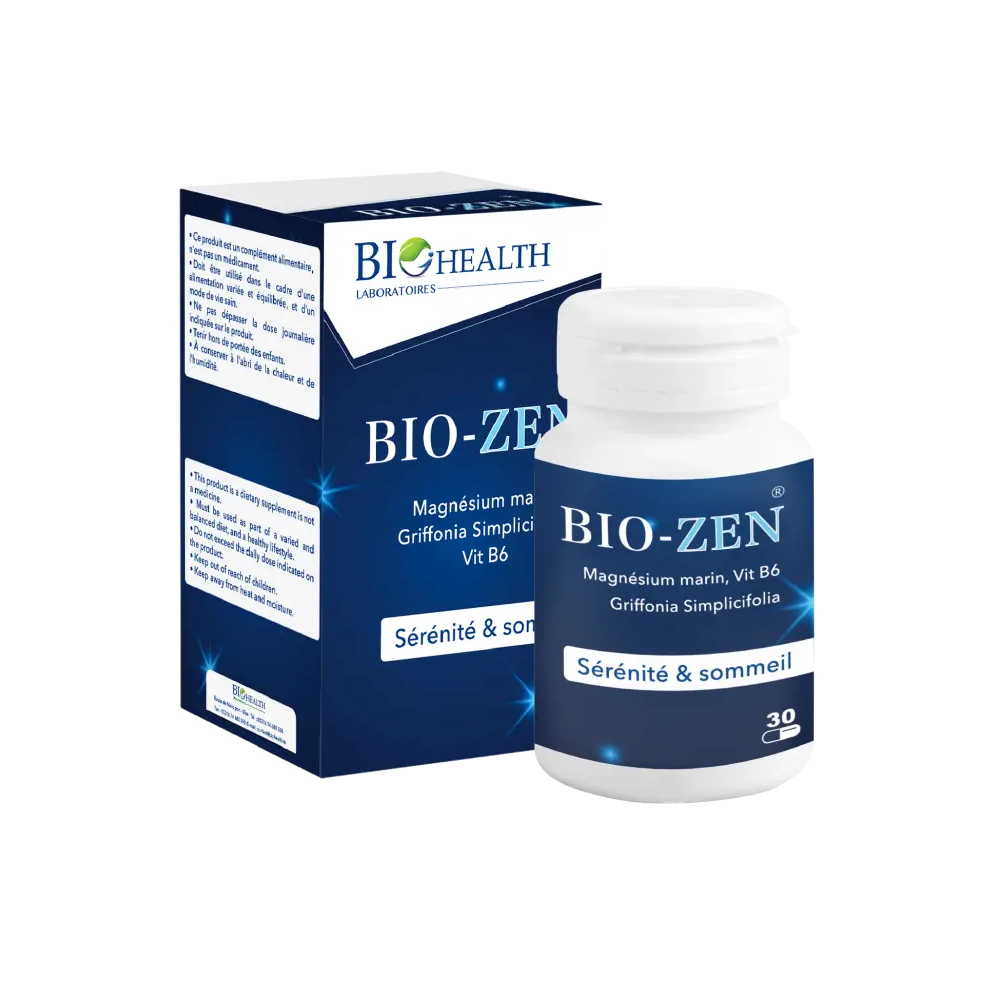 Les gélules Bio-Zen Sommeil de Biohealth sont un complément alimentaire formulé pour favoriser l'endormissement et améliorer la qualité du sommeil. Ce produit est une synergie d'extraits de plantes traditionnellement reconnues pour leurs propriétés relaxantes et sédatives. L'ingrédient phare est la mélatonine, souvent appelée l'hormone du sommeil, qui aide à réguler le cycle veille-sommeil et à réduire le temps d'endormissement. La formule est enrichie en valériane, une plante connue pour ses vertus apaisantes qui aide à diminuer la nervosité et l'anxiété, favorisant ainsi un sommeil plus paisible. Le complément contient également de la camomille, qui contribue à la relaxation, et de la vitamine B6, qui participe au bon fonctionnement du système nerveux. Bio-Zen Sommeil est la solution idéale pour les personnes ayant des difficultés à s'endormir, souffrant de réveils nocturnes ou cherchant à retrouver un sommeil réparateur.