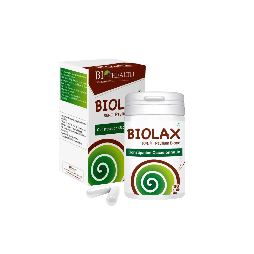 Les gélules Biolax de Biohealth sont un complément alimentaire formulé pour réguler et stimuler le transit intestinal en cas de constipation occasionnelle. Ce produit est une combinaison d'extraits de plantes, notamment le séné et le cascara, reconnus pour leurs propriétés laxatives. Ces plantes contiennent des substances actives qui agissent en stimulant les contractions de l'intestin, ce qui favorise le mouvement des selles et leur évacuation. La formule est également enrichie en fenouil, qui aide à réduire les ballonnements et les gaz souvent associés à la constipation, et en rhubarbe, qui contribue à la régularité du transit. Biolax est une solution efficace pour retrouver un confort digestif et une sensation de légèreté.