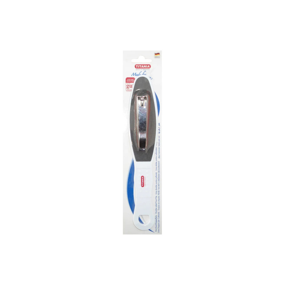 Ce duo indispensable de la marque Titania réunit deux outils de précision pour un entretien complet et professionnel des ongles de pieds. Le coupe-ongle, fabriqué en acier de haute qualité, est conçu pour offrir une coupe nette et droite, idéale pour prévenir les ongles incarnés souvent causés par des coupes arrondies. La lime de pédicure qui l'accompagne permet de lisser les bords après la coupe et d'affiner la forme de l'ongle pour éviter les accrocs dans les chaussettes ou les collants. Ce set compact est parfait pour une routine de soins à domicile ou pour être glissé dans une trousse de voyage.