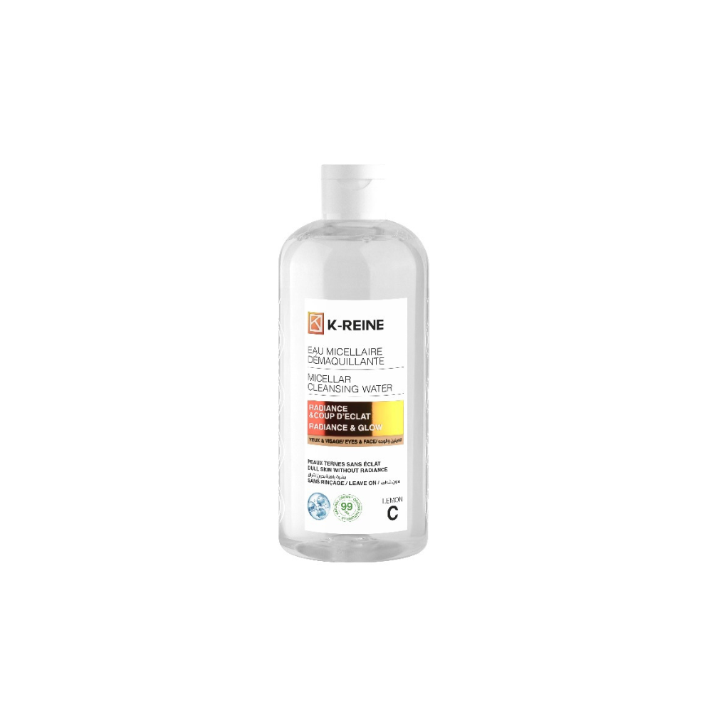 L'Eau Micellaire Démaquillante à la Vitamine C de K-REINE est un soin multiaction conçu pour les peaux ternes, fatiguées ou en manque d'éclat. Elle combine trois actions essentielles en un seul geste : elle nettoie, démaquille et tonifie le visage et les yeux. Grâce à l'alliance puissante de la Vitamine C stabilisée et de l'Extrait de Citron, cette eau micellaire procure un effet "coup d'éclat" immédiat et durable. Les micelles douces qu'elle contient agissent comme de minuscules aimants pour capturer et éliminer efficacement le maquillage, les impuretés et l'excès de sébum, sans nécessiter de rinçage ni irriter la peau. Sa formule aide à illuminer et unifier le teint tout en offrant une protection contre le stress oxydatif. La peau est ainsi laissée fraîche, revitalisée, douce et rayonnante de santé.