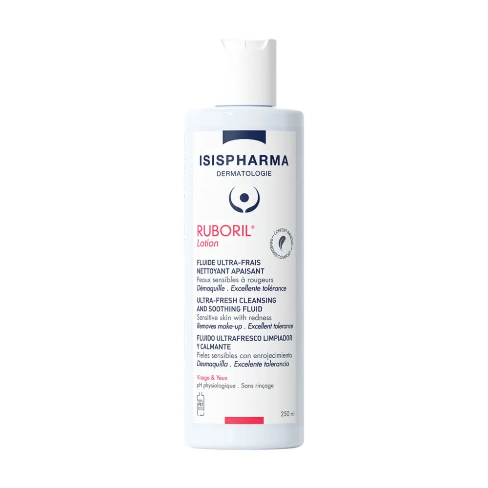L'ISISPHARMA RUBORIL LOTION DÉMAQUILLANTE 250 ML est un fluide ultra-frais, nettoyant et apaisant, spécialement formulé pour les peaux sensibles, réactives et sujettes aux rougeurs (érythrose, couperose, rosacée). Ce flacon de 250 ml offre un démaquillage et un nettoyage tout en douceur, sans agresser l'équilibre fragile de ces peaux.