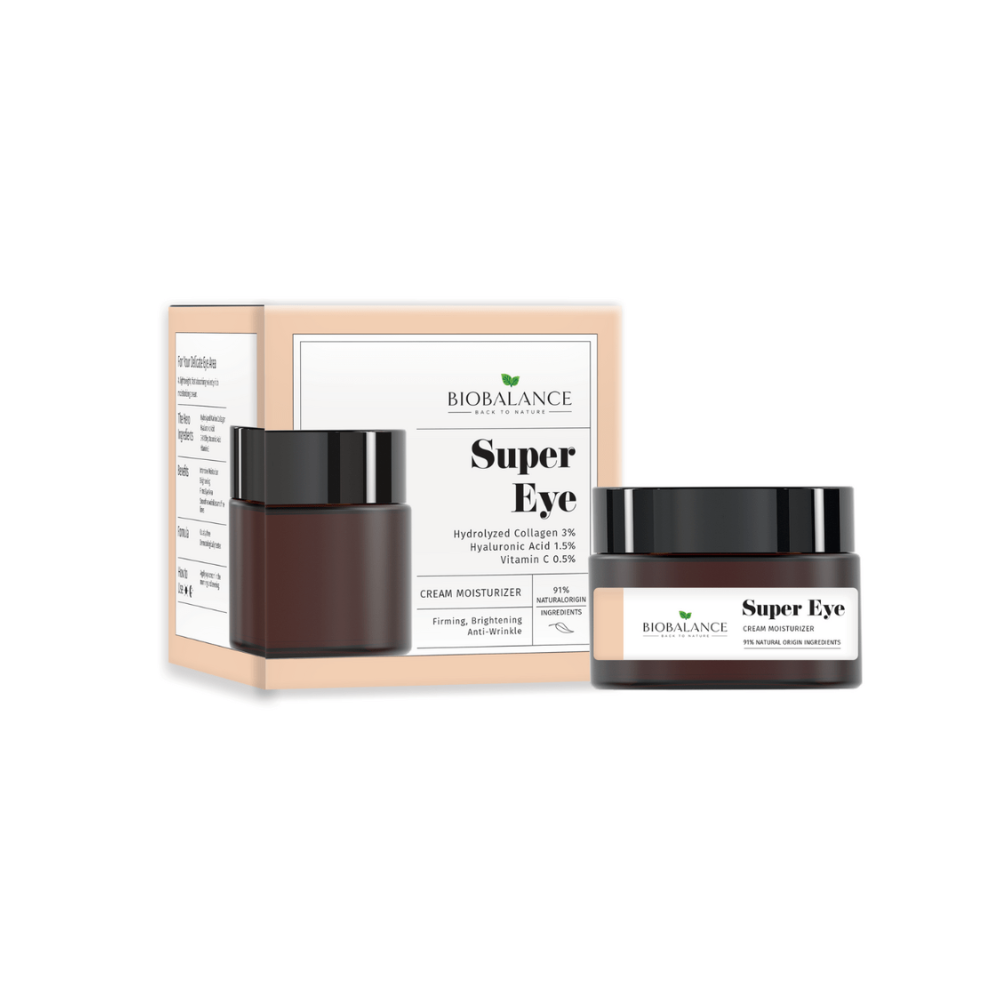 La Biobalance Super Eye Cream est un soin complet et multi-correcteur formulé pour cibler les signes de fatigue et de vieillissement du contour de l'œil. Ce soin agit simultanément sur les cernes, les poches et les ridules grâce à un complexe d'actifs synergiques qui boostent la microcirculation et renforcent la structure cutanée délicate de cette zone.
