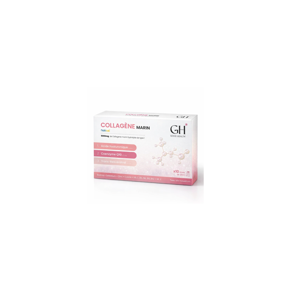 Good Health Collagène Marin est un complément alimentaire de haute performance présenté sous forme de doses liquides prêtes à boire (shots). Ce format est spécifiquement conçu pour offrir une concentration maximale en peptides de collagène, permettant une absorption rapide par l'organisme. Il agit comme un véritable booster de jeunesse en ciblant la structure profonde du derme, ainsi que la vitalité des phanères (cheveux et ongles).